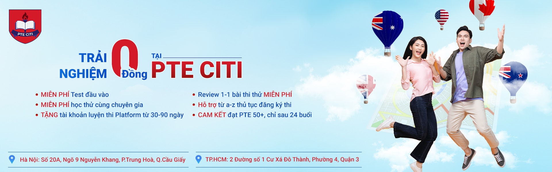 Chương trình “Trải nghiệm học thử 0 đồng – Điều trị mất gốc” tại PTE CITI là cơ hội tuyệt vời để bạn khởi đầu hành trình chinh phục chứng chỉ PTE một cách vững chắc. Hãy nhanh tay đăng ký và trải nghiệm những buổi học giá trị, đồng thời nhận sự hỗ trợ tận tình từ đội ngũ chuyên gia của chúng tôi.